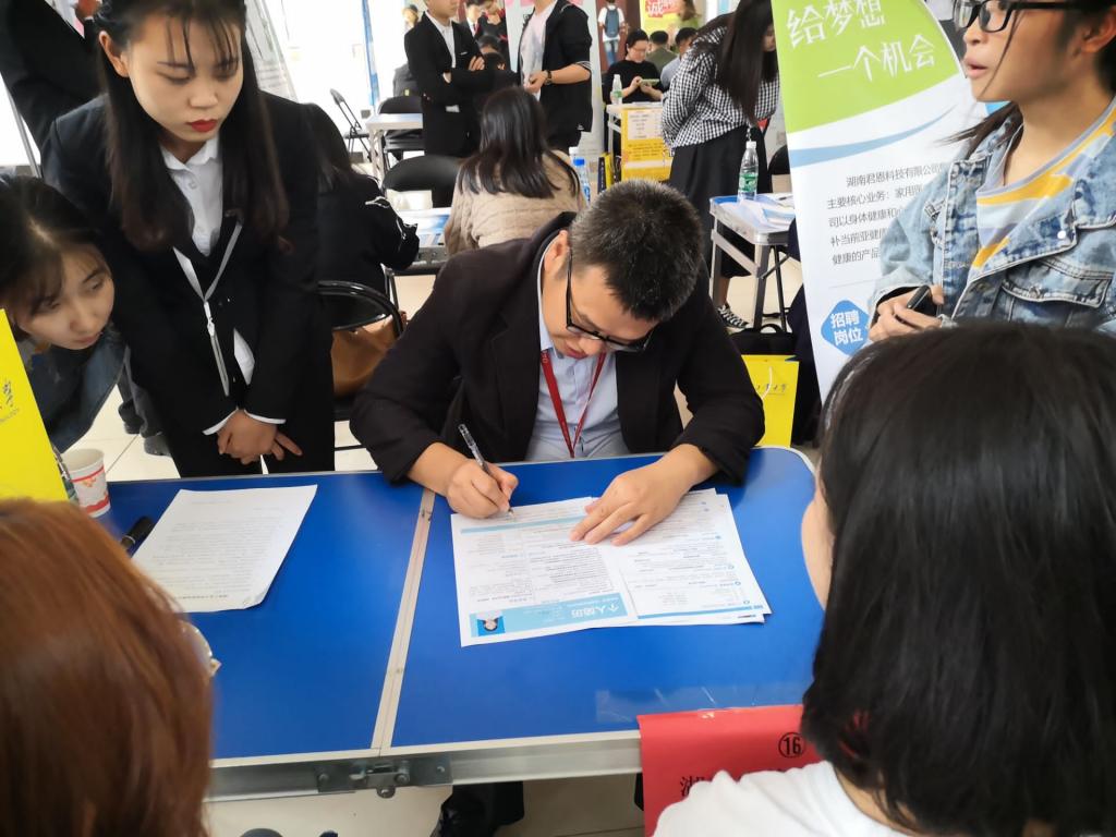 此次双选会是77779193永利官网近期举办的又一次大型招聘活动,共有18家来自湖南 、浙江 、江西、山东等代表性区域的参会企业,为77779193永利官网应用化学、化学工程、生物技术专业毕业生提供了近500个就业岗位,吸引了全校近200名毕业生参加此次双选会,递交简历总数达120余份,有近50人将参加下一轮面试,17人当场签约。不仅如此,77779193永利官网大一至大三的同学们也积极参加此次双选会,提前感受招聘氛围,了解企业需要什么样的毕业生,给自己上了一堂生动的职业生涯规划和就业指导课。