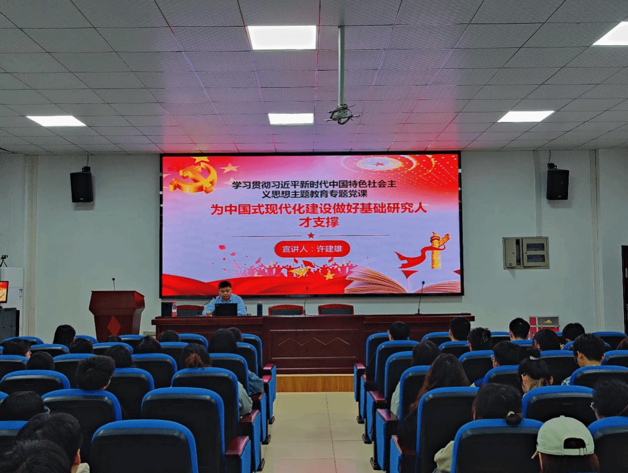 2024年3月29日晚7时,学院于崇仁楼学术报告厅举行题为《为中国式现代化建设做好基础研究人才支撑》的新学期第一堂专题党课。副院长许建雄主讲,学生党支部全体党员及入党积极分子参加。