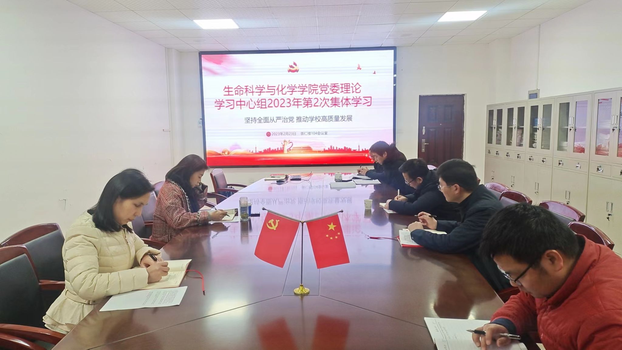 2月23日上午,学院党委理论学习中心组开展2023年第二次学习,主题为“坚持全面从严治党 推动学校高质量发展”,全体学院党委委员参会,学院纪委委员刘有势和李广利列席。
