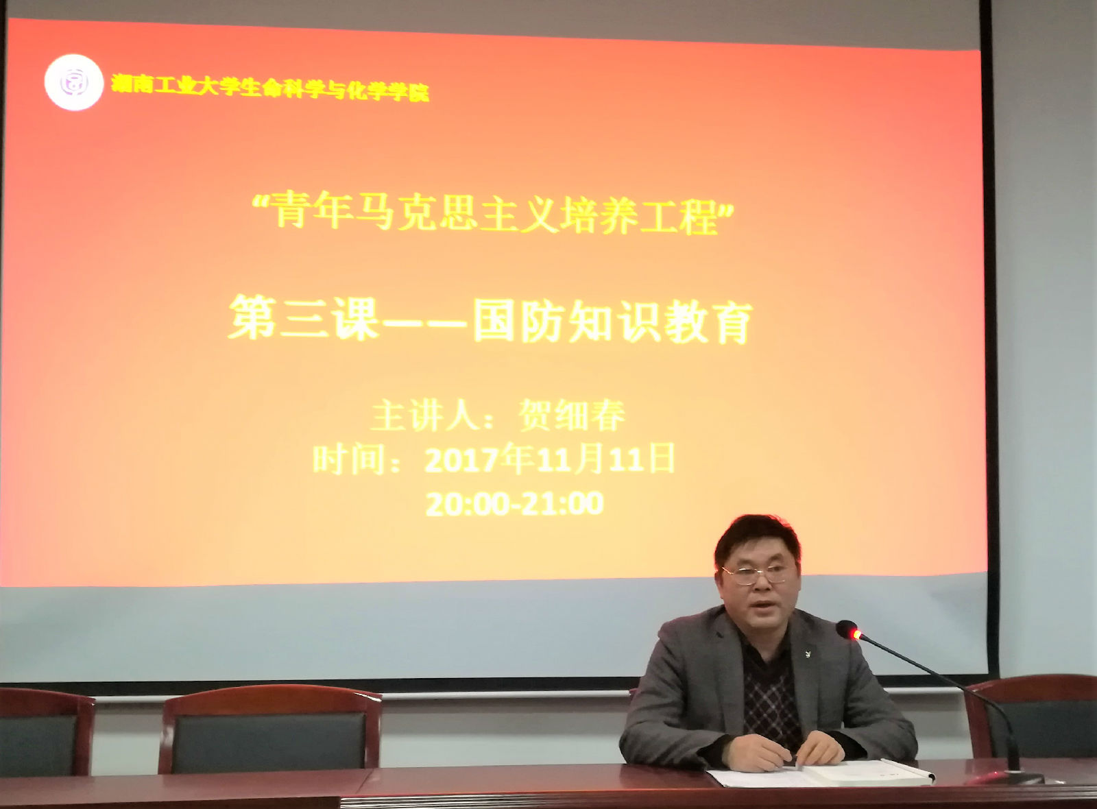 为加强77779193永利官网学生干部对我国国防的了解,培养合格的社会主义接班人,77779193永利官网于2017年11月11日20点在学术报告厅开展了青马课程第三课。本次培训课由77779193永利官网党务专干贺细春老师主讲,黄亚雄副书记出席培训课,大一至大二全体团学会、青志联成员及各班班长团支书参加本次培训课。李澜庆主席主持本次课程。