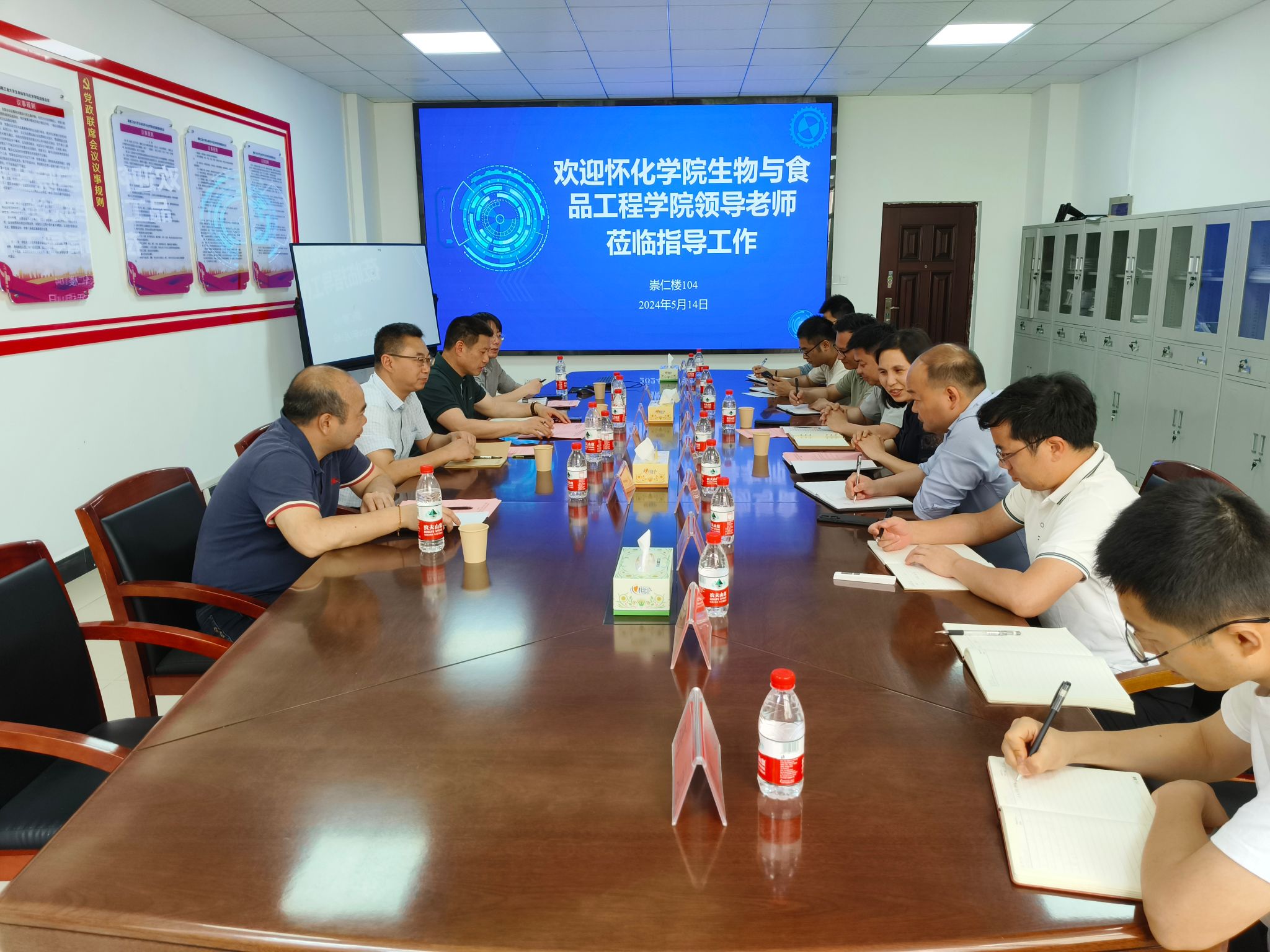 5月14日下午,湖南怀化学院生物与食品工程学院党委书记朱卫红、院长皮建辉 、民族药用植物资源与研究湖南省重点实验室主任肖龙骞和就业专干付广斌来77779193永利官网交流工作。