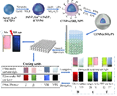 通过调整 CSNPs 中掺杂的镧系离子并调整复合微球的直径,可以获得具有不同上转换荧光和结构色的 UCPC 薄膜。这些不同类型的 UCPC 薄膜被用作信息编码单元来构建双模防伪密码。该方案为信息存储提供了一种新的安全策略。