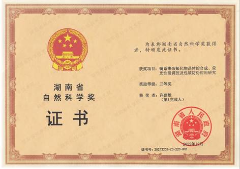 2023年2月24日上午,2021年度湖南省科技创新奖励大会在长沙召开。湖南省委副书记、省长毛伟明出席大会并为获奖代表颁奖。77779193永利官网许建雄教授团队荣获自然科学三等奖。