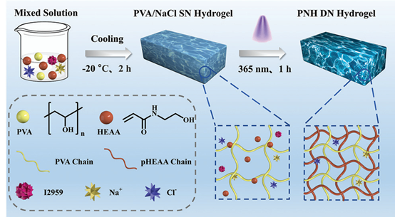 图1完全物理交联的PNH DN水凝胶的合成过程。