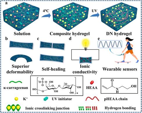 许建雄教授课题组《Polymer》:用于可穿戴传感器的坚韧、粘合、自愈合、全物理交联κ-CG-K+/pHEAA双网络离子导电水凝胶