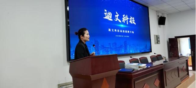 会上,北京迪文科技有限公司从自身发展讲起,详细为同学们介绍了公司背景、主营业务、园区规模、核心竞争力以及同学们最关心最感兴趣的岗位、薪资、员工福利和培养体制、激励机制等问题,向同学们展示了极大的诚意与信心,抛出橄榄枝并期待同学们的面试与加入。同学们也十分配合公司HR的宣讲,积极向HR请教有关公司和工作方面的问题,也有毕业生在会议结束后递交了简历,当场进行面试。