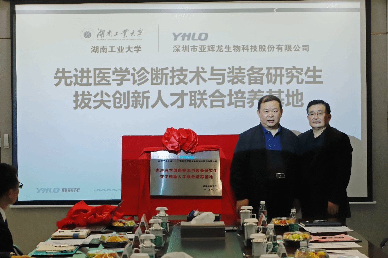 深圳市亚辉龙生物科技股份有限公司与湖南工业大学从2017年起就建立了校企合作关系,并于2020年签订了校企产教融合全面战略合作协议,校企双方在联合教学、科研合作、本科生实践教学、研究生培养及产业化开发等领域建立了深度合作关系,特别在高层次人才培养方面,已连续培养了四届研究生。在此基础上,2023年,校企双方联合申报并获批了“湖南省先进医学诊断技术与装备研究生拔尖创新人才联合培养基地”,基地的获批是校企产教融合、深度合作的又一重要成果,将为校企双方培养高层次创新型人才提供更高的平台,以人才赋能企业科技创新,助推企业高质量发展。