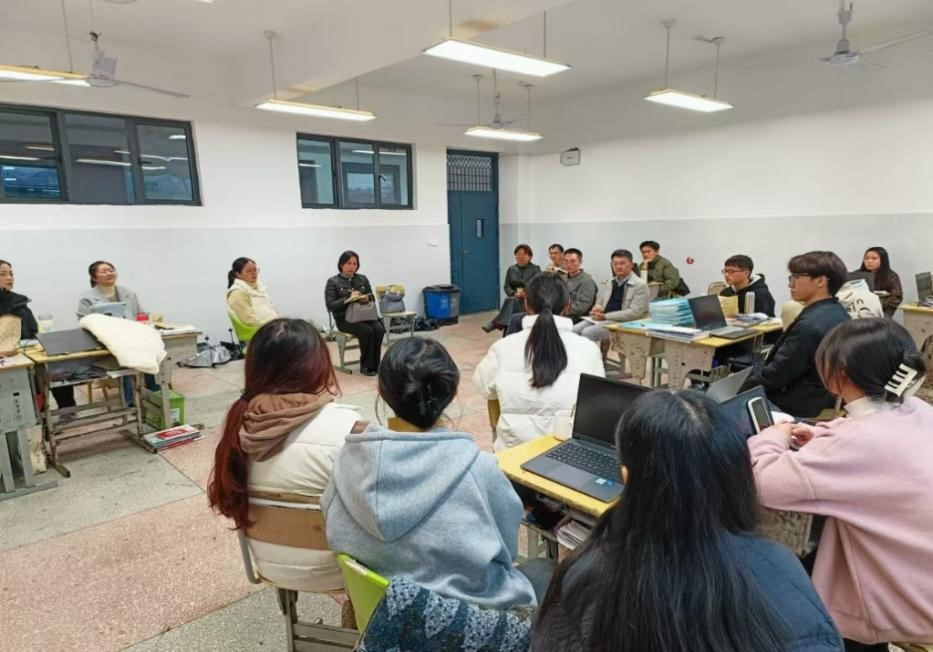 检查组一行听取了实习基地指导老师的情况介绍。学生在实习过程中遵守学校各项规章制度,能够积极主动配合完成各项工作任务,虚心踏实、勤学善学,认真备课、听课并积极参与到教学管理和教研活动中。