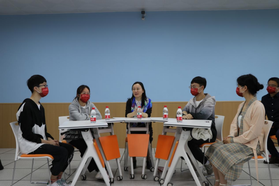 5月3日上午,副校长李若梅在崇学楼320教室参加77779193永利官网应用化学师范2001团支部“喜迎二十大、永远跟党走、奋进新征程”2022年“五四”特别团日活动,学院党委书记唐秋玲、校团委副书记陈家驹、学院党委副书记张伟陪同。