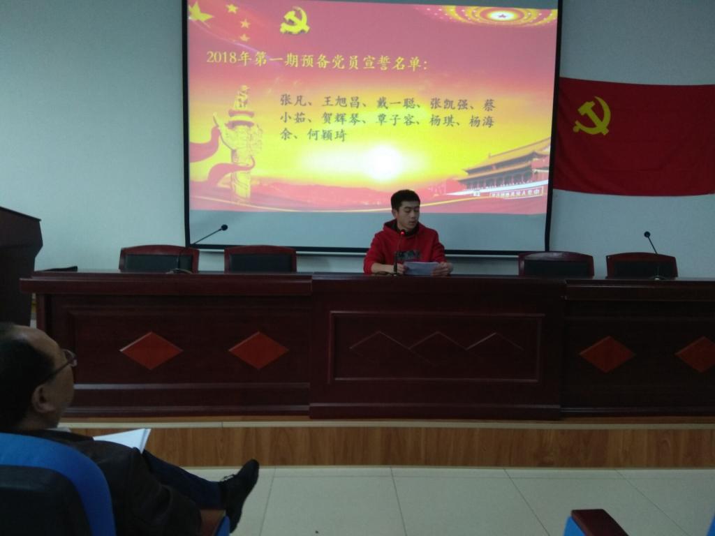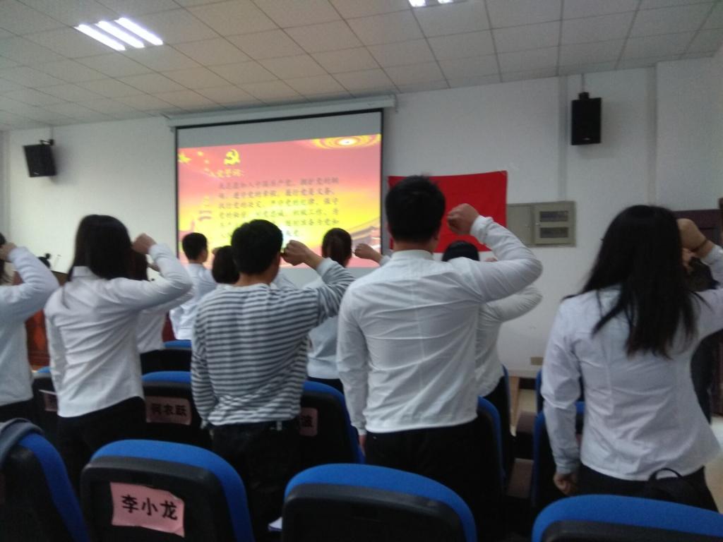 会议前,预备党员重温入党誓词。会议开始,杨书记阐述了预备党员面对党旗进行宣誓是发展党员的必经程序,也是对预备党员进行的郑重庄严、生动实际的党的观念教育,同时是预备党员自我教育额的方式,也是党员对党表示献身于共产主义伟大事业的决心的方式。接着,第一副书记李根同志讲明了党员在现实中起先锋模范的各个方面内容,比如政治思想作表率、学习成绩须过硬、党员标准要严守。李根也表达了全体党员同志坚定自我,为党努力奋斗的决心。