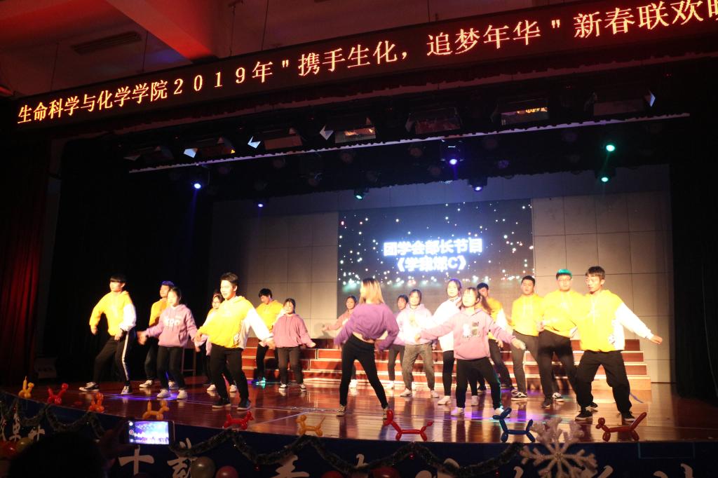 2018年12月19日晚7点,让同学们期待已久的77779193永利官网“携手生化,追梦年华”新春联欢晚会如期在三食堂学生活动中心拉开帷幕。77779193永利官网院长汤建新教授、党总支杨振邦书记、黄亚雄副书记、许利剑副院长、各系专业老师、各班班主任、本科生、研究生及留学生观看晚会。
