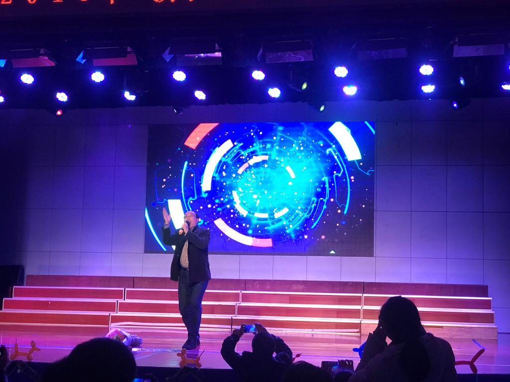 这场别开生面的晚会和以往有很大的不同,院长书记亲自上场演唱歌曲,不知道同学们没有注意到观众席上外国留学生的身影呢?能让中国文化通过我们的表演展示给他们,我们引以为傲,希望在下一场晚会舞台上可以看到他们的表演。