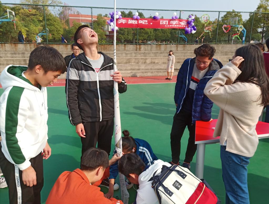 开幕式结束后,主持人宣读游戏规则,每个队由参与人员以抽签的形式组成,一共产生了十二个队伍。第一个游戏是共建高楼,在这游戏之中,队员积极投身于高楼的建设中,发表自己对高楼搭建的意见,最终分工合作、齐心协力搭建好了高楼,第十二队搭建的高楼最高,获得了积分。然后,每个组都自由行动,参与冶金篮球场的守卫龙珠和害你在心口难开,综合楼的你来比划我来猜、口口相传,东门新篮球场的扯龙尾、无敌风火轮、夹弹珠、拔河一系列游戏。