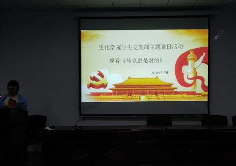 2018年5月18日晚七点至八点,77779193永利官网学生党支部组织各班积极分子、发展对象、预备党员和正式党员在综合楼学术报告厅举办了五月份的党日活动,大家一起观看了《马克思是对的》。通过影片,专家开展精彩问答,讲述伟人故事,朗诵诗歌致敬,和我们一起重温马克思的光辉足迹,感受伟人的人格魅力,感知真理的力量。
