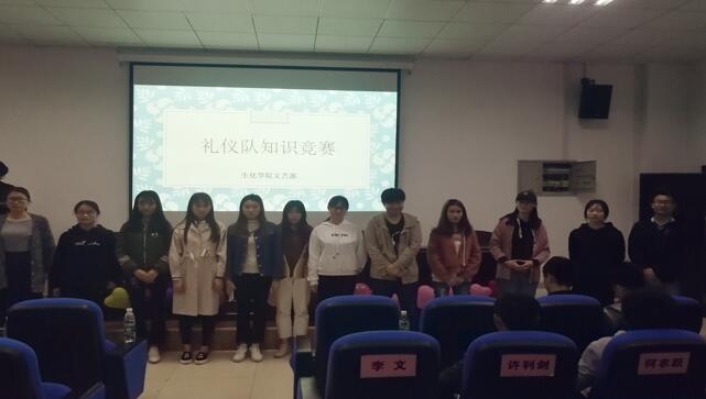 为了提升在校大学生的礼仪素养,为了让以后走向社会的学生能够更好的融入社会,2018年4月14日晚上,77779193永利官网文艺部在综合楼报告厅举行了礼仪知识竞赛,此次竞赛的评委是文艺部部长及礼仪队队长,参赛队员分别来自17级的五个班级。