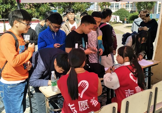 活动刚刚开始就有很多同学围了过来,他们都是爱护环境保护校园的引领者。志愿者们热情的接待他们,呼吁同学们行动起来保护校园环境,营造一个和谐美丽的校园,再一步一步教他们如何完成活动流程。