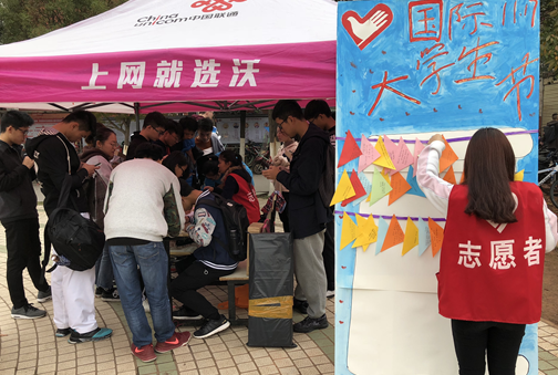 2017年11月15日,为了让大学生更好的了解自己,对将来许下期许,做好自己。77779193永利官网青志联在三食堂圆形广场举办了“国际大学生节”活动。