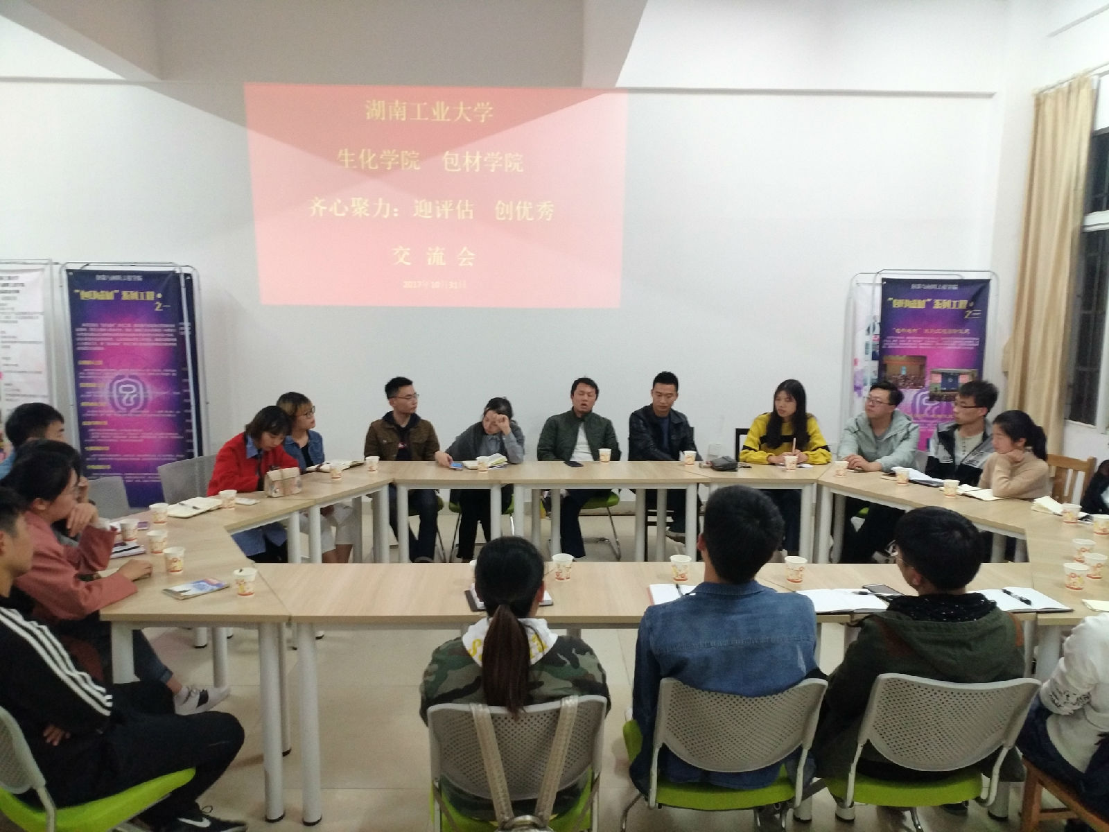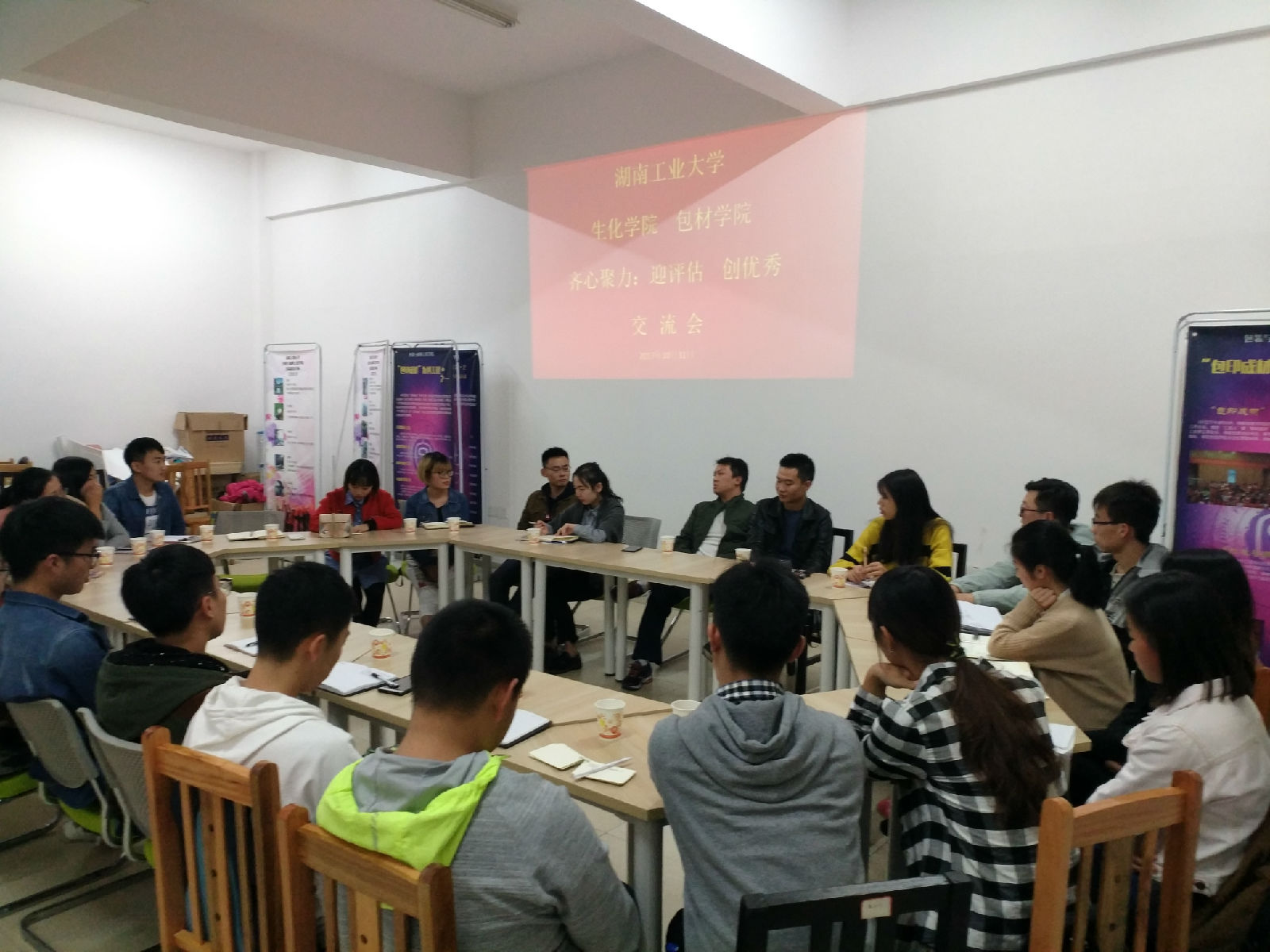 为促进包材学院与77779193永利官网的共同发展,建设两院交流、合作、共赢关系。2017年10月31日晚7点,两院于包印楼辅导室开展“迎评估,创优秀”工作交流会。出席交流会的有包材学院何欣老师,77779193永利官网龚果老师、两院主席团成员以及两院学生党支部代表。