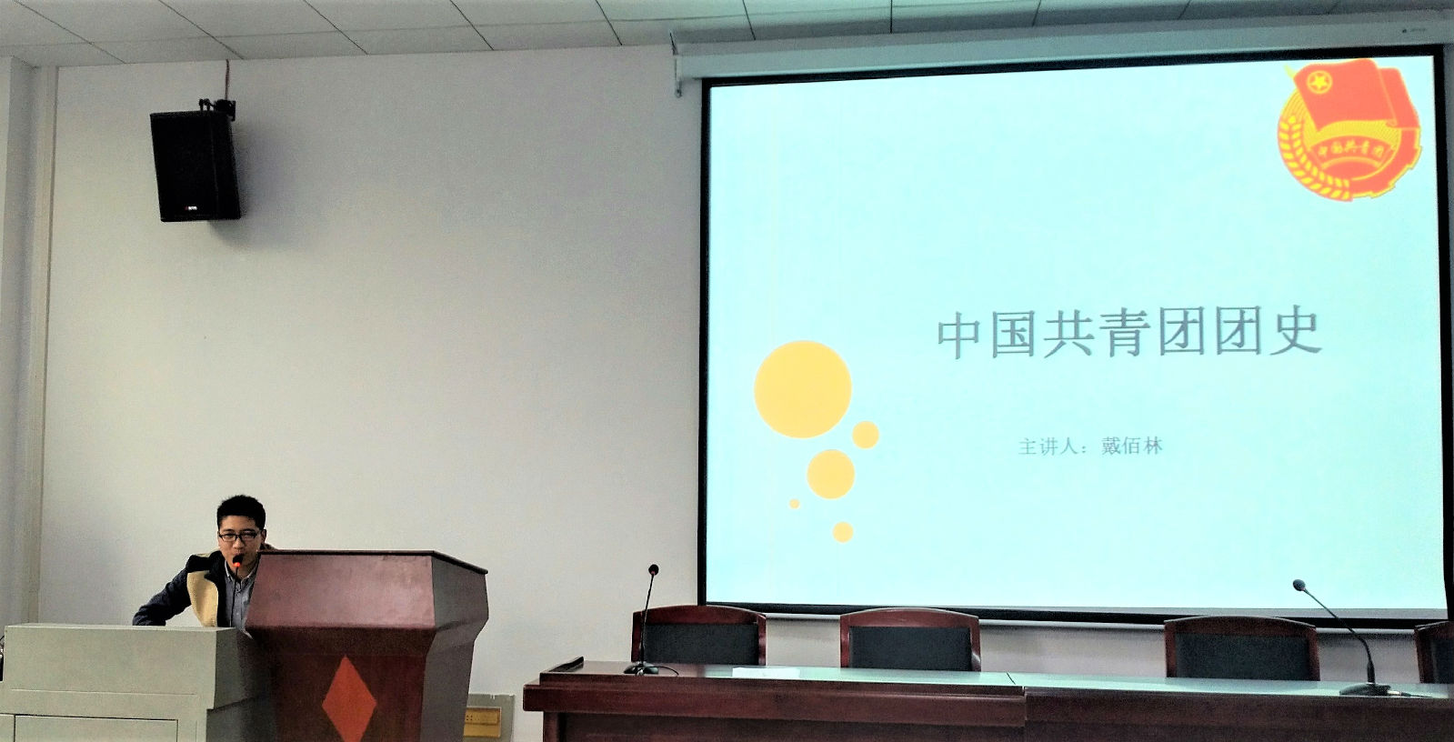 青马工程第一堂课由戴老师主讲,主要讲解中国共青团团史,戴老师介绍到:中国共产主义青年团是中国共产党领导的先进青年的群众组织,是广大青年在实践中学习共产主义的学校,是中国共产党的助手和后备军。最后,戴老师希望学生干部们要以身作则,努力学习科学文化知识,为同学们竖立好榜样。