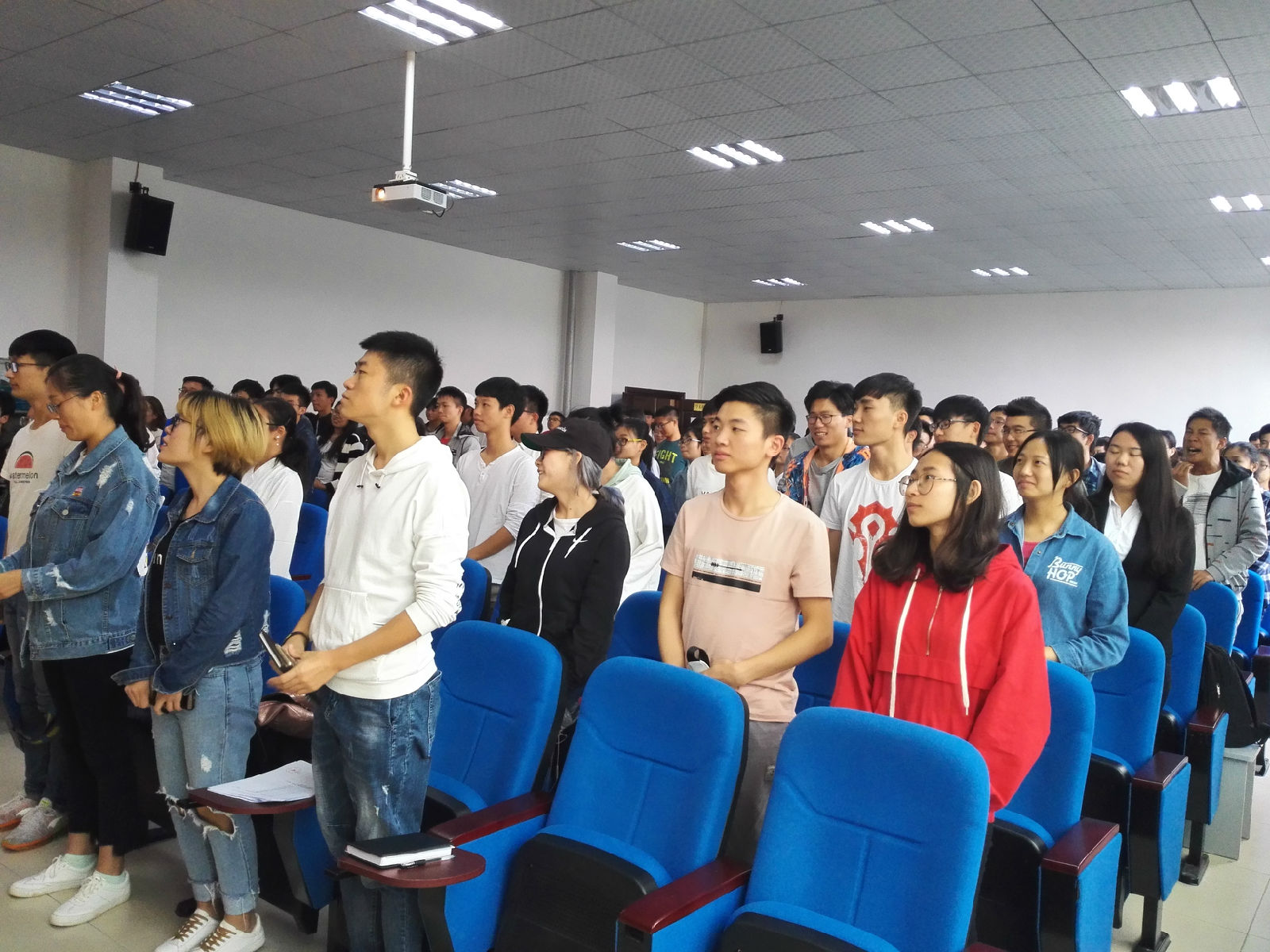 本次仪式由学生会主席李澜庆主持,会议第一项全体起立齐唱团歌,紧接着由黄亚雄副书记致辞,他强调三个重点:一、进行理论知识培养;二、发展青年学生;三、突出理论与实践相结合。接着由学生代表陈婉君上台发言,介绍了青马工程注重培养学干,促进学生全面发展以及弘扬服务同学的精神之后,学生会主席李澜庆也对课程安排、上课要求进行了一一讲解。