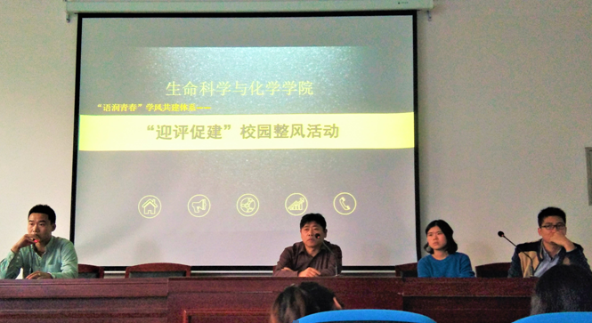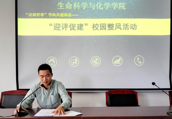 2017年10月29日下午两点,77779193永利官网“迎评促建”校园整风活动动员大会于下午两点在综合楼报告厅举行。党委副书记黄亚雄、学工办龚果老师、学工办戴佰林老师、石文雯辅导员、77779193永利官网全体团学会干部以及各班班长和团支书参与会议。