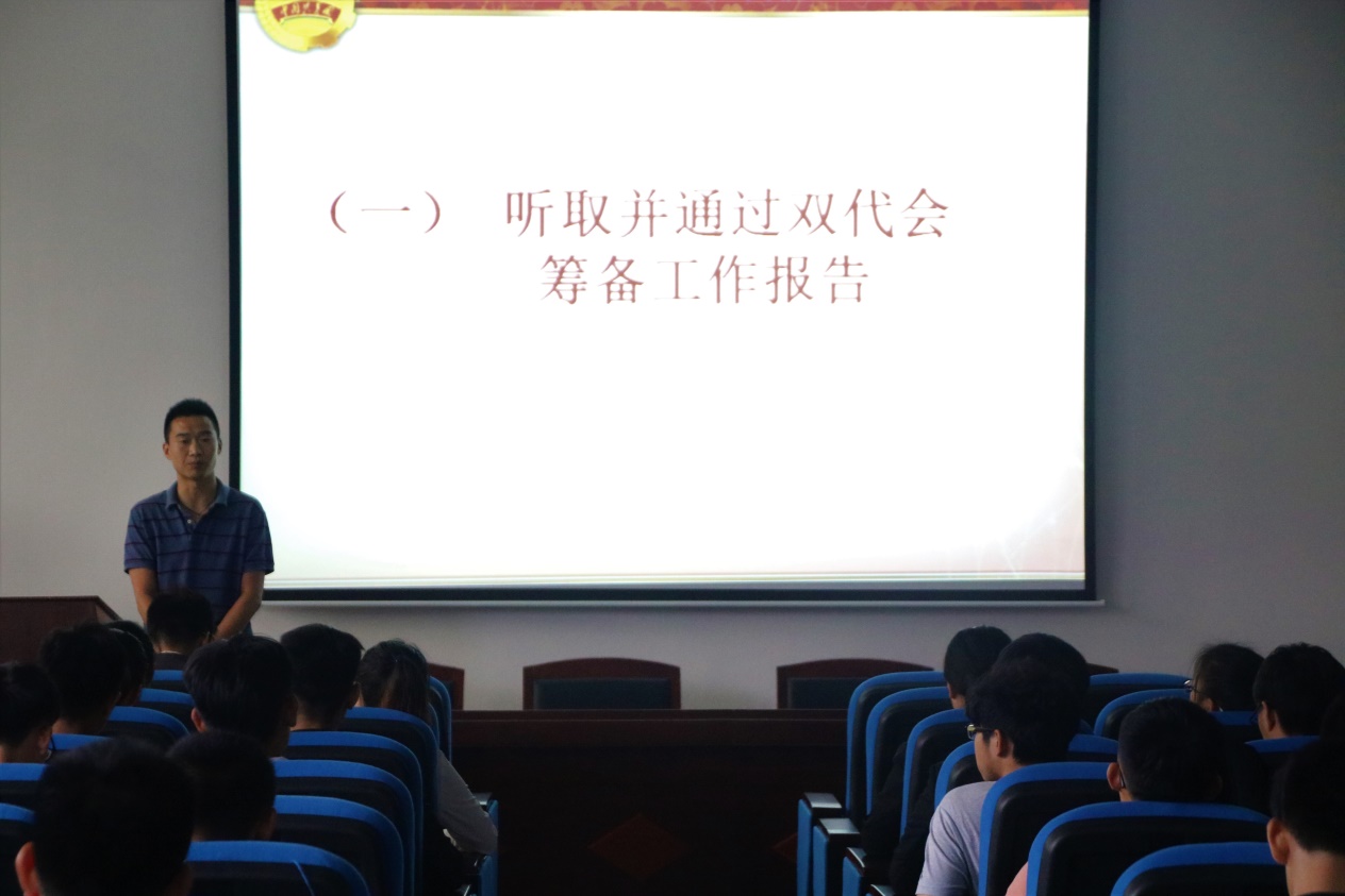 2017年5月23日下午,77779193永利官网在综合楼学术报告厅召开了77779193永利官网第一次团员、学生代表大会预备会议。出席本次会议的有:77779193永利官网学工办龚果老师、戴佰林老师及第一届团学会主席团,来自学院各班级、各部门共128名代表参加了会议。