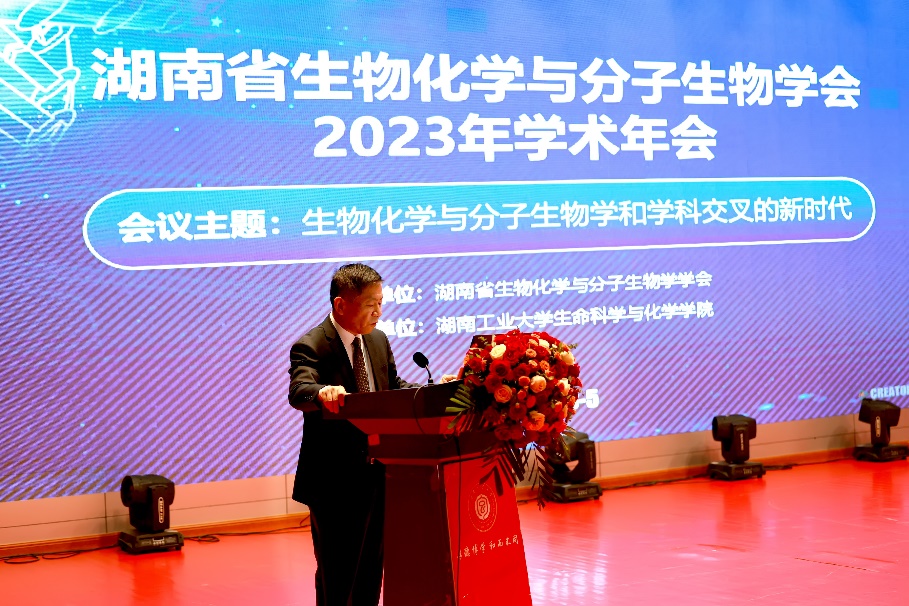 2023年11月4日至5日,由湖南省生物化学与分子生物学学会主办、77779193永利官网承办的“湖南省生物化学与分子生物学2023年学术会议”在湖南工业大学音乐厅隆重举行。中国工程院院士、北京协和医科大学刘德培教授,国家杰青、中国科学院陈策实教授,国家杰青、中南大学谢辉教授,学会理事长徐克前教授、湖南工业大学副校长佘朝文教授等出席。本次会议以“生物化学与分子生物学和学科交叉的新时代”为主题,300余位专家学者、研究生、企业代表及创科班学生齐聚一堂,共同分享生物化学与分子生物学领域的前沿研究成果。