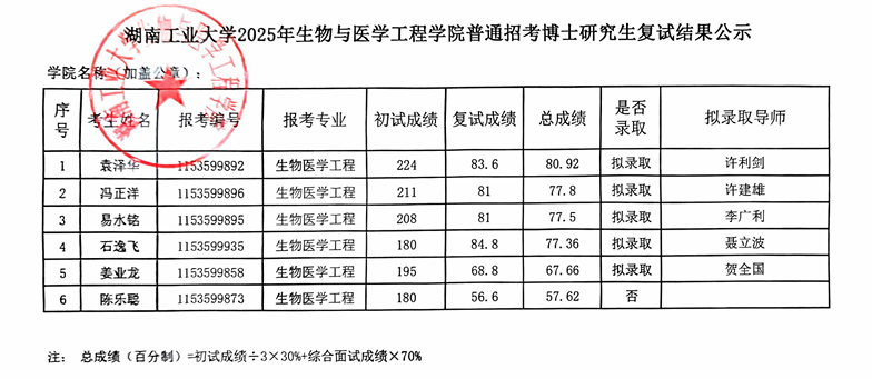 下一条:湖南工业大学生物与医学工程学院2025年博士研究生招生结果公示(第一批)