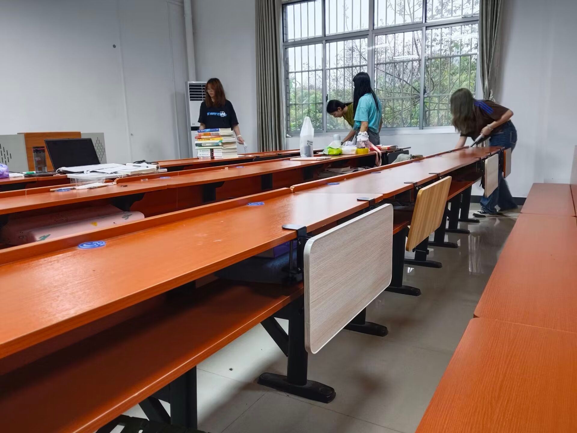 “劳动之风吹拂九州,留下一片灿烂”,前辈们身体力行,教会后辈劳动之美。现在,志愿者们手持抹布,赓续前辈们的劳动美德,以劳动之巧手,拂去自习室的灰尘与污渍,以己之心花,增添自习室的生机与活力。