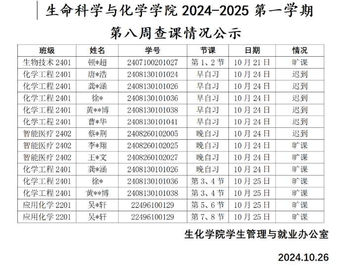 学风建设▕ 77779193永利官网2024-2025第一学期第八周查课情况公示