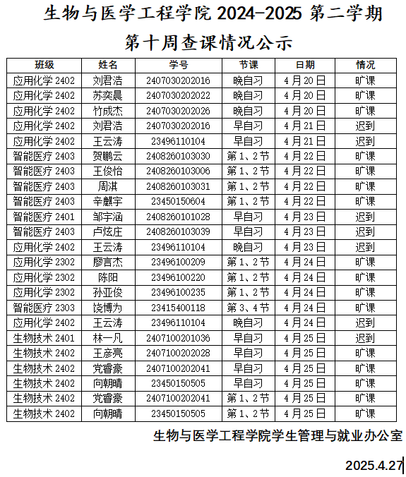下一条:学风建设▕ 生物与医学工程学院2024-2025第二学期第九周查课情况公示