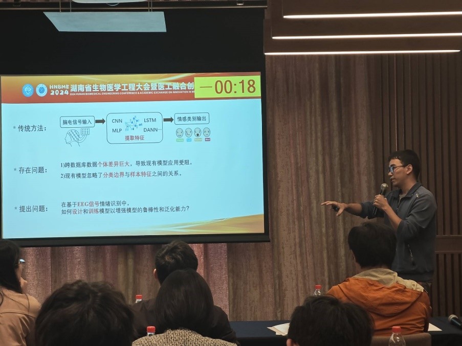 本次汇报主要包括了口头汇报与墙报展示,在口头汇报中,生物医学工程专业22级朱琳与24级吴灿标以流利的表达,新颖的科研成果在湖南省生物医学工程研究生论坛口头报告中荣获口头汇报一等奖。